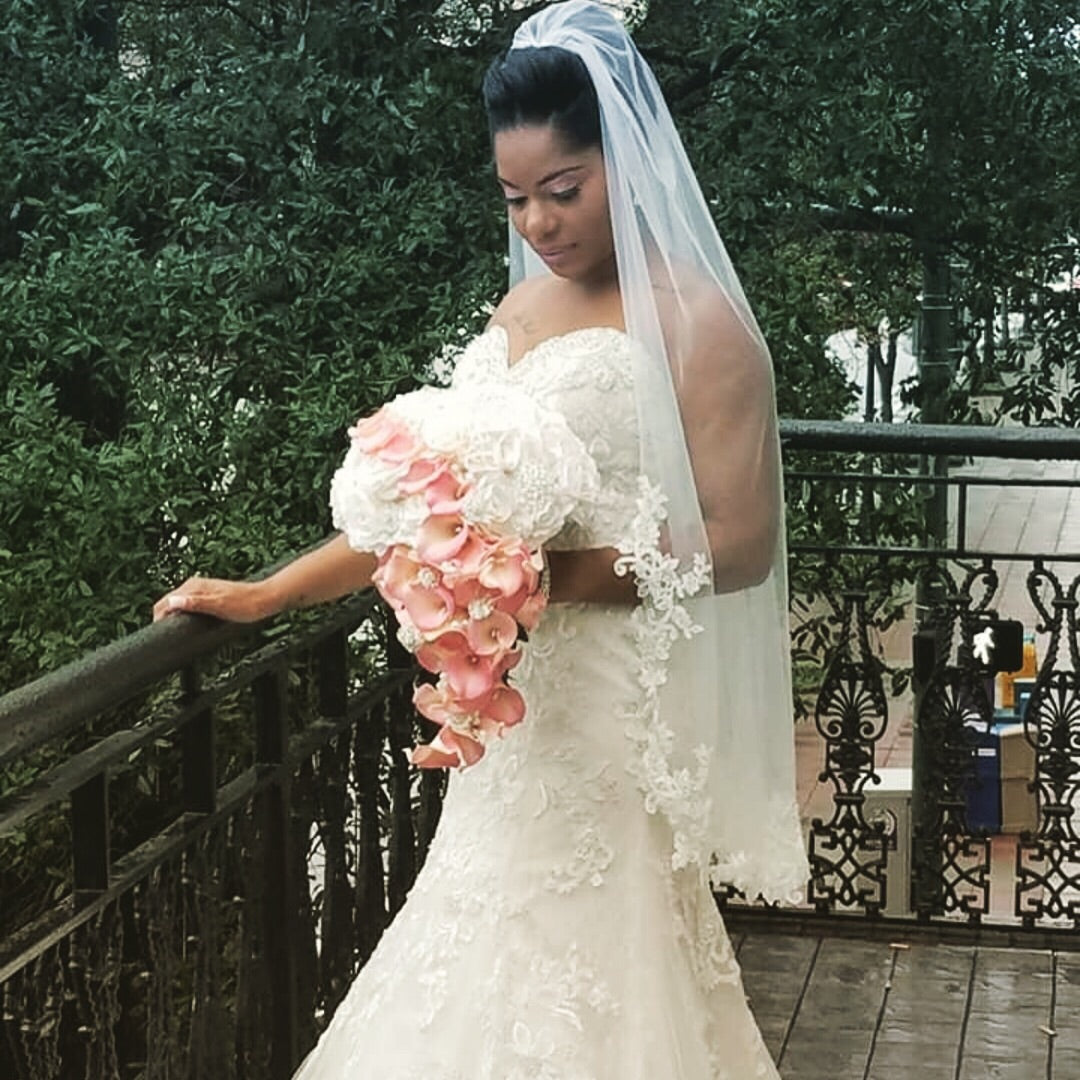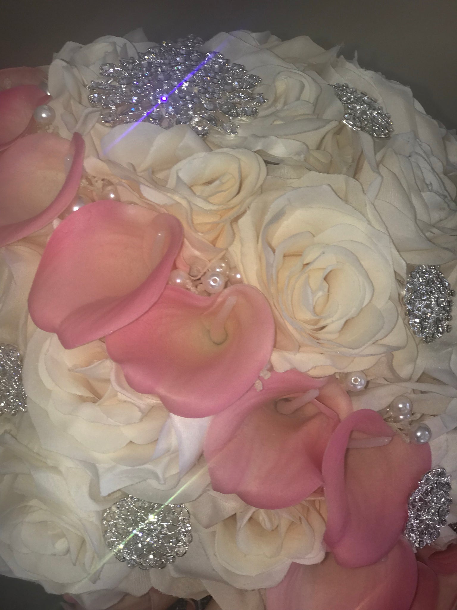 The Robin Bouquet features cascading silk premium roses and real touch lilies, bling handle and brooches.